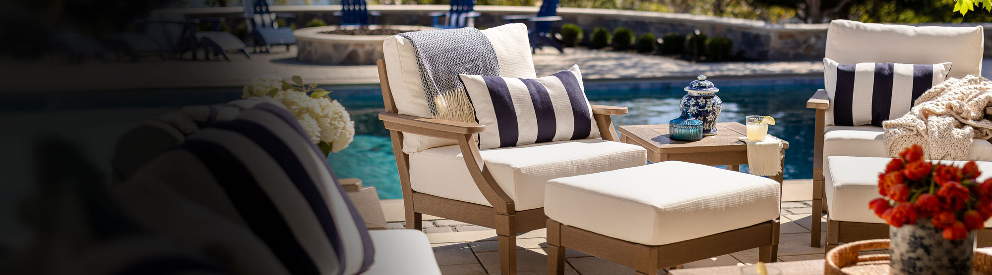 Discover our wide selection of outdoor seating and ottoman styles, all crafted in the USA with ultradurable HDPE lumber and backed by a 5-year warranty, ensuring lasting performance and a reliable return on your investment.